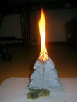 Presenta riesgo de quemaduras y de fuego, debido a su contenido de metal pulverizado, que tiende a separarse de la vela.
