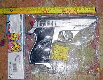 Presenta riesgo de lesión para los ojos. En las pruebas la energía cinética excedió el límite de 0,08 J. El producto no se atiene a la Directiva de Juguetes y las normas europeas.