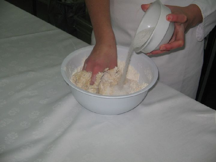 Añadir la sal, con la manteca y el azúcar, posteriormente unir con el agua.