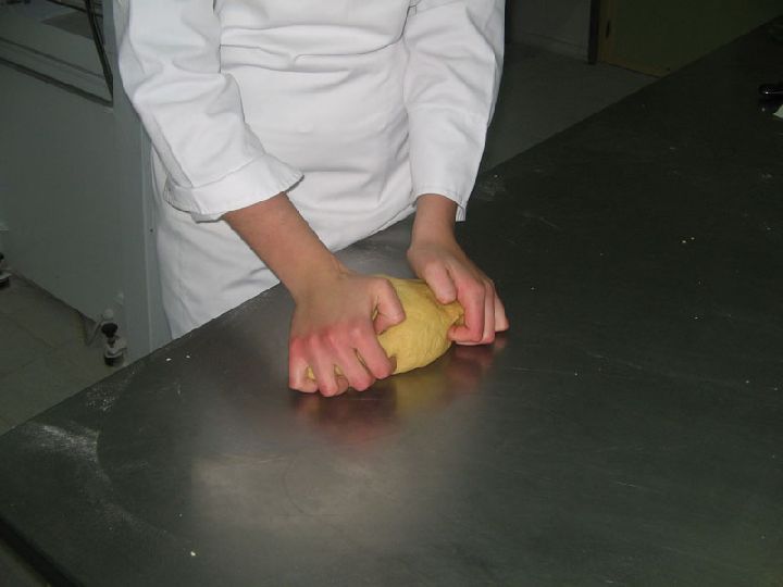 Incorporar a esta mezcla la leche tibia, tiene que obtenerse una masa muy compacta.