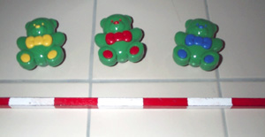 Presenta riesgo de lesión y ahogamiento. Determinadas partes de los ositos, todas de diminuto tamaño, pueden soltarse, con el resultante peligro de que los niños puedan tragarlas. El producto no cumple la Directiva de Juguetes ni la normativa comunitaria.