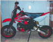 El uso de esta máquina es extremadamente peligroso y podría dañar al conductor o a cualquier otra persona que se encuentre alrededor de la moto; los dedos se pueden insertar fácilmente en el piñón, puesto que el protector de cadena no es el adecuado; no hay protector de cadena cerca del diente de engranaje para prevenir la interceptación; la protección lateral del extractor se calienta hasta 84ºC y la curva del tubo de escape en el área del pie se calienta hasta 230ºC. La moto tiene los bordes punzantes, tales como los paneles para proteger la superficie inferior y el pedal de freno; el filtro de aire se cae fácilmente si se toca con el pie; el sistema de la válvula de cierre de combustible está mal colocado; la válvula reguladora de aire no permanece en la posición correcta; el nivel de ruidos es excesivo. Además, el manual de información y de instrucciones es incompleto. El producto no se atiene a la Directiva de maquinaria.