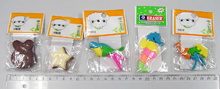 La forma, el color y el aspecto de estos borradores de goma pueden confundirse con alimentos; por lo tanto, presentan riesgo serio de asfixia para los niños pequeños. Los productos mencionados pueden asemejarse a chocolate, galleta, caramelos, chicle. Estos productos no se atienen a la Directiva del Consejo 87/357/EEC.