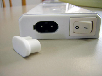 Contiene riesgo de producir descarga eléctrica. La lámpara tiene dos enchufes que conectan entre sí. Este inusitado sistema se protege mediante un casquillo fácilmente movible. Las partes vivas de las inmediaciones del interruptor pueden llegar a ser fácilmente accesibles. El producto no cumple la Directiva de Bajo Voltaje ni las normas comunitarias.