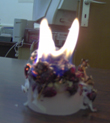 Durante la combustión de la vela, las flores secas incorporadas como decoración pueden arder y generar una llama de aproximadamente 10 cm., lo que provocaría la destrucción total de la vela. Dado la intensidad de la llama, es probable producir quemaduras a los usuarios. Además, presenta riesgo de provocar fuego en espacios cerrados.