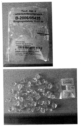 El producto se puede confundir con alimentos, dulces o auténticos cubitos de hielo. Tiene bordes desiguales. El producto presenta riesgo para la salud, puesto que si se ingiere puede provocar asfixia, además de herir la zona digestiva.