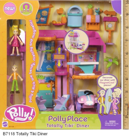 Modelos: B2632-Polly Place Hanging out House. B3158-Polly Place Treetop Clubhouse. B3201-Spa Day. B7118-Polly Place Totally Tiki Diner. G8605-Quik Clik Boutique. H1537-Quik Clik City Pretty Playset. H1538-Quik Clik Sporty Style Playset. H3211- Totally Zen Playset.