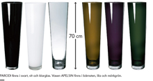 201-102-34 florero negro 70 de PARODI, - Florero de cristal claro 70 de 000-795-45 PARODI, florero blanco 70 de 501-121-99 PARODI, - 601-129-19; colores clasificados del florero 70 de APELSIN (ámbar, verde oscuro y púrpura).