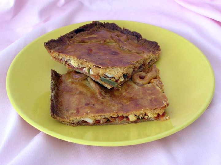Por último, se tapa con la otra parte de la masa el relleno, se pinta con un huevo batido y se cuece en el horno a 180º durante unos 30 minutos. Ya fría está lista para servir.