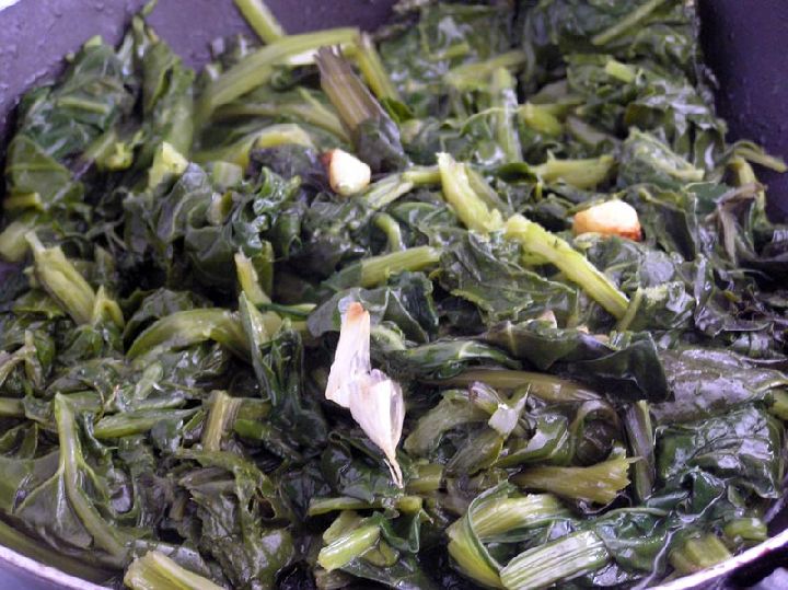 Cuando ya están cocidas se escurren muy bien y se rehogan en una sartén con aceite y ajo, cortado en láminas o dientes sin cortar, según el gusto..