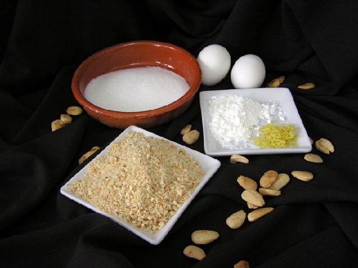 100 g. De Almendras Molidas 2 Claras de huevo 75 g. De Azúcar Glas 20 g. De Harina de Maíz Ralladura de limón