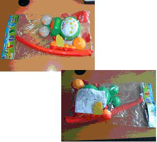 Riesgo de lesión o de asfixia. El juguete puede dividirse en trozos muy pequeños, que podrían tragar los niños. Además, otras piezas pueden romperse en pedazos afilados. El producto no cumple la Directiva de Juguetes y la normativa europea.