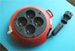 Cable extensible con cuatro enchufes. Marca de fábrica: DESIGN. Número del modelo: Caja de diseño, 4 m, H05 VV/FG1.0, EAN: 4007123057559, tipo marcado en el enchufe: 210. Origen: Desconocido
