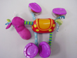 Descripción: Caballo de juguete con cabeza y patas de textil; cuerpo y enganches de plástico duro. Los enganches son sonajeros que contienen piezas pequeñas. El juguete está pensado para niños mayores de 6 meses.