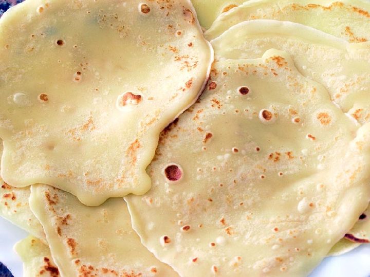 Las crêpes francesas, o filoas gallegas, son unas sencillas tortitas finas que pueden ser rellenadas de dulce o salado, generalmente de alguna compota o mermelada. En este caso las presentamos rellenas de arrope y calabazate y con una reducción del arrope a manera de sirope.