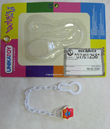 Descripción: Sostenedor de chupete en forma de oso con cadena. Este producto tiene la advertencia de que no es un juguete. Sin embargo, está marcado con la marca de CE.