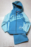 Descripción: Chandal de niño, talla 3 de color azul. La capucha se aprieta por medio de un cordón unido a los extremos con una palanca plástica transparente. No lleva información en lengua español. Lleva inscrito en la etiqueta de tela la composición, instrucciones de cuidado y el importador: ESTRELLA J&B S.L. DE TRANSPACIFIC.