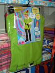 Descripción: Traje para niños con una etiqueta que reza: CE de DISFRACES ATOSA, distribuido por ATOSA, hecho en China. Advierte: Mantener lejos del fuego. Mantener fuera del alcance de los niños. 100% poliester. Hay una etiqueta adhesiva con el texto www.toyplanet.es, 10769137, edades de 2-4 años y el precio.