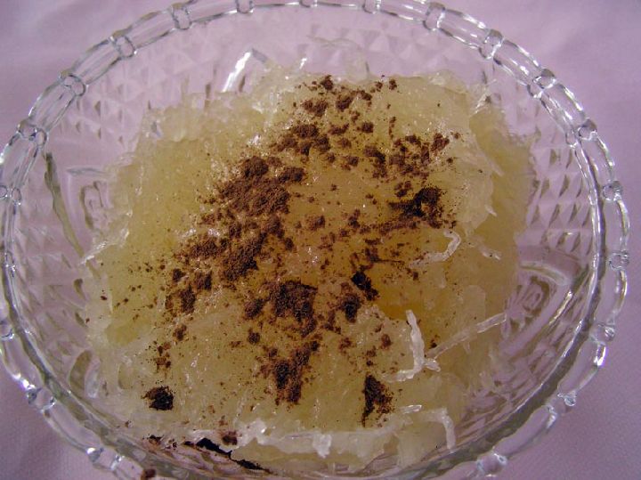 El otro elemento del dulce, el cabello de ángel, también puede adquirirse en conserva y es sobradamente conocido en la repostería murciana, sin él no serían posibles los cordiales navideños, el pastel Felipe o pastelón de Cartagena, ni los pastelillos de pascua, ni las orejas de fraile... sin olvidar que era el antiguo relleno de las tortadas en la huerta de Murcia, un detalle ahora algo olvidado.