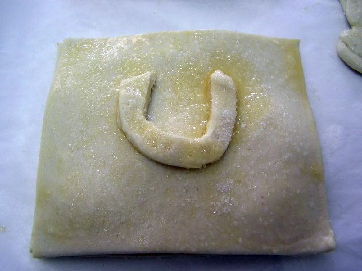 Ya formadas las costillas solo queda untarlas de huevo y azúcar y hornearlas a no menos de 200 º centígrados, con el horno precalentado. Cuando el hojaldre suba y se dore será señal de que están listas y ya solo quedará volver a azucarar al gusto.