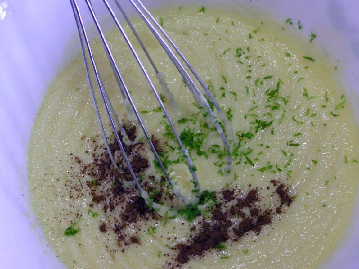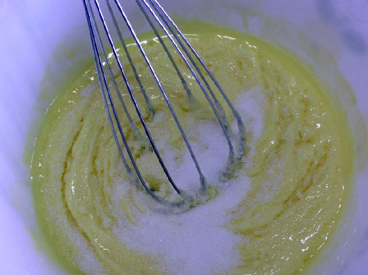 Primero, hacemos la masa del pastel, uniendo azúcar y manteca, o margarina, a punto de pomada. Después se pueden añadir los aromáticos, raspadura de limón y canela y, finalmente, el vino blanco, que también puede ser sustituido por mistela.