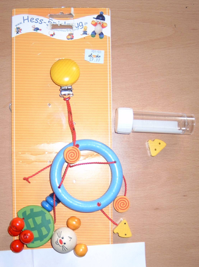 El producto plantea riesgo de asfixia, ya que el bloque de madera del juguete que tiene forma de queso y podría romperse con una fuerza mínima en piezas muy pequeñas. No se atiene a la Directiva de juguetes y la normativa europea.