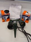 Descripción: Negro rectangular, con pie de hierro. Hay una etiqueta en la base con el texto siguiente: "OUTDOOR FLOOD LIGHT-230V/50HZ-1000W", instrucciones y diversos símbolos. En el envase encontramos la siguiente información: "Modelo SL - 1500. Potencia 1500 W. Color negro ".