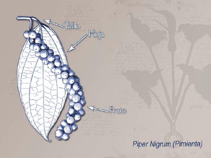 La pimienta es una planta perenne originaria de la India, cultivada actualmente en las zonas tropicales de Asia, América y África. Procede del arbusto Piper nigrum L., perteneciente a la familia de las Piperáceas, del que se comercializan sus frutos aromáticos que también reciben el nombre de pimienta. A esta familia pertenecen unas 1400 especies, de las que casi 600 tienen propiedades aromáticas, aunque muy pocas son cultivadas con fines comerciales.