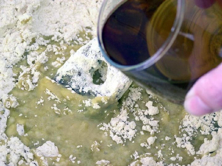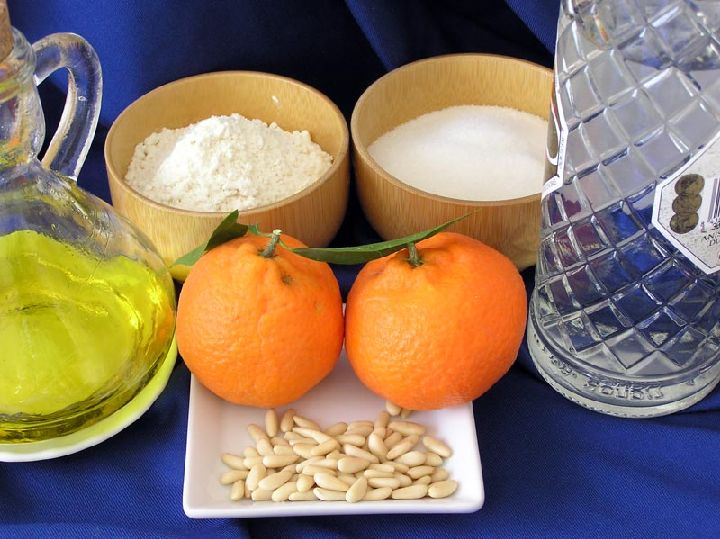 Como vemos los ingredientes son muchos, se trata de una receta muy aromatizada. Tras requemar el aceite con cáscara de naranja o limón, se añadirán a este el azúcar, el zumo de naranja, el anís y la esencia de matalauva.