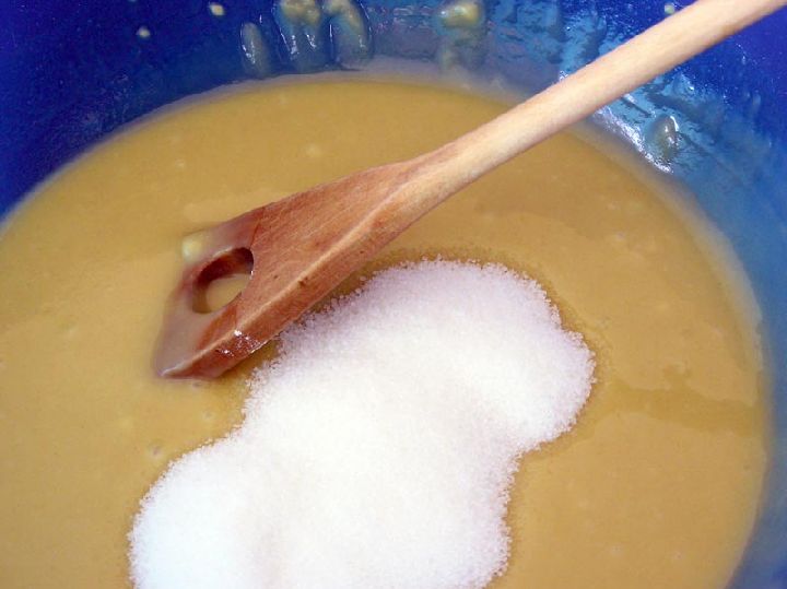 Después añadiremos el azúcar y el anís. El alcohol hará que la masa se contraiga un poco, y en este momento tendremos que comenzar a amasar con las manos para mezclar bien los ingredientes. La masa ha de quedar metida en harina lo suficiente como para poder extenderla y formar nuestras porciones. Si, por causas varias, vemos que está algo líquida, añadiremos harina poco a poco hasta dejarla en su punto.