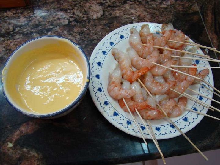 Una vez tengamos la gamba preparada sólo nos falta introducirlas en nuestro batido y freírlas.