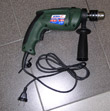 Descripción: Taladro de metal, cubierto de un material plástico verde oscuro.