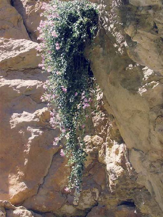 Ocupa fisuras en roquedos verticales y extraplomados de naturaleza calcárea, donde son frecuentes los aportes de nutrientes por procesos de escorrentía y lavado de suelos topográficamente más elevados, en altitudes de 900 a 1.100 m, en el piso bioclimático mesomediterráneo con ombrotipo seco a subhúmedo. Se encuentra acompañada de otras especies rupestres como la campanilla de roca (Campanula velutina), cincoenrama (Potentilla caulescens), zapaticos de la virgen (Sarcocapnos baetica subsp. baetica), etc.