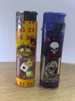 Descripción: 1. Encendedores de varios colores con una cámara transparente para combustible en el que también hay dados. Los encendedores están marcados con la inscripción "Casino" y varios números; 2. Encendedores de varios colores con una cámara transparente para el combustible en el que hay una calavera. Los encendedores están marcados con la inscripción "Bloody".