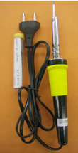 Descripción: Soldador de hierro. Tiene una etiqueta adhesiva donde se indica que no es recomendado para niños menores de tres años.