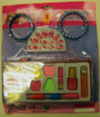 Descripción: Este juguete consta de dos pulseras, 12 uñas de plástico rojo y un maquillaje fijo para niños. Marca "CE" y "made in China". Una etiqueta adhesiva en la parte posterior con información y advertencias por el importador.
