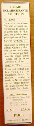 Descripción: La caja contiene un tubo blanco (50 ml) y las las siguientes advertencias: "Evitar cualquier contacto con los ojos o mucosas. Si se produce irritación, consulte a su médico. No utilizar en niños menores de 12 años. Mantener fuera del alcance de los niños". La lista de ingredientes incluye hidroquinona.