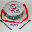 Descripción: Tambor hecho de plástico multicolor. Hay dos palos de color azul y una cuerda atada al juguete, que tiene por objeto permitir que los niños se cuelguen el tambor del cuello. El juguete es etiquetado con pictograma relativo a la restricción de edad (0-3 años), "marca CE", EAN, nombre y dirección del importador, "Made in China".
