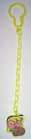 Descripción: El producto está fabricado de PVC, consta de un clip de fijación para la ropa, una cadena y un soporte para el chupete. El clip lleva impresa la imagen de un león.