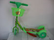 Descripción: Triciclo para niño con pegatinas de 'Shrek' y un reposapiés de color rojo que se ilumina. También tiene una canasta suspendida del eje que une el manillar con la rueda delantera. Está empaquetado en una caja de cartón, que contiene las palabras TRICICLO CON VIBRACIÓN Y ENCENDIDO. Este producto es falso.