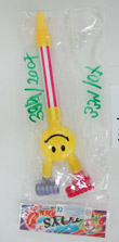 Descripción: Silbato de juguete de plástico duro con boquilla de plástico blando. En el envase hay dos pegatinas con la siguiente información: marca CE, inscripción: "Made in China", EAN, nombre y dirección del importador, y una advertencia: "¡Atención! No es conveniente para niños menores de 3 años". También hay un pictograma en relación con la restricción 0-3.