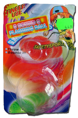 Riesgo de producir asfixia. En el caso de que rote sobre la cabeza, la cuerda elástica se extiende y hay peligro de que envuelva el cuello. El producto no se atiene a los estándares de la Directiva de Juguetes y la normativa europea.