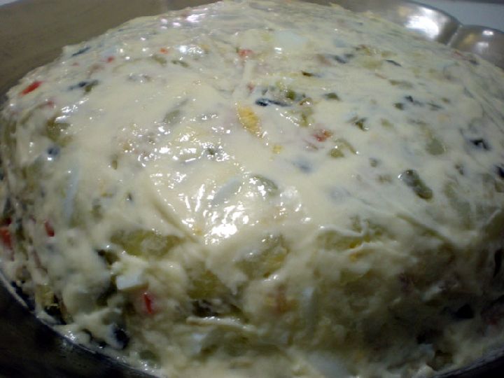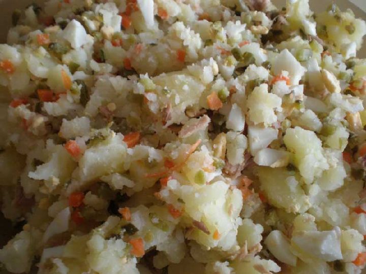No obstante, mientras la comemos o no es interesante dejarla en la fuente con una capita por encima de mayonesa para evitar que el frío reseque la patata, el huevo o el atún, quedando así protegida.