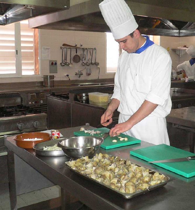 Primer paso: Limpiar las alcachofas y trocearlas en cascos.