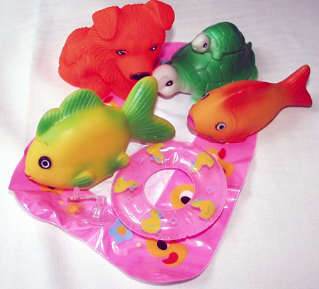 Riesgo de asfixia e intoxicación. Los dispositivos que exprimen son fácilmente desmontables y los niños podrían tragarlos. Los muñecos no cumplen la Directiva de Juguetes, la normativa europea y los requisitos de etiquetado de CE. Contenido excesivo de phthalates en los juguetes: DEHP: 13.0-34.0 %m/m, y DINP: 0.5-18.6 %m/m.