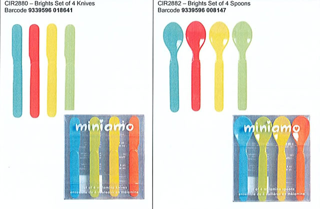 Los productos presentan riesgo de asfixia debido a que los cuchillos y tenedores pueden quebrarse fácilmente y desprenderse puntas.