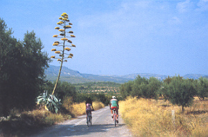 Sin coger a la derecha el camino de lo Ancho (km 2,84 / 555 m), bajamos recto con precaución hasta el río Alhárabe, cruzando por un vado (km 3,60 / 510 m) y remontando una rampa hacia el cortijo del Lentiscar. Allí, donde termina el asfalto (km 4,53 / 545 m) cogemos el camino de tierra a la derecha que indica la entrada a la finca de Rojas. El siguiente cruce, con un pino en el centro, nos señala a la derecha la entrada a los alojamientos rurales de las Casas de Rojas (km 4,95 / 545 m], pero nosotros seguimos recto entre olivos y almendros hacia los Llanos de Rojas.