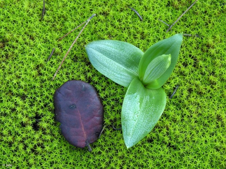 Hierba perenne, de tubérculos elipsoides. Tallos verdes, lisos, de hasta 30 cm, con roseta basal de hasta 4 hojas oblongo-lanceoladas, y hasta 3 hojas caulinares, envainantes. Inflorescencia laxa, de una a cinco flores, que asemejan a un insecto, con seis piezas, la mayor, el labelo, de hasta 15 mm de longitud, cubierto de pelos cortos, muy densos, de aspecto aterciopelado, azul oscuro, con mácula grisáceo-azulada, en forma de W. Ovario erecto, retorcido, que madura en fruto de tipo cápsula, de hasta 4 cm de longitud.