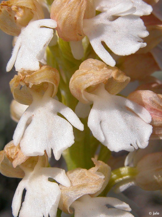 Se han observado ejemplares hipocromáticos, de flores decoloradas, blanquecinas, sin manchas, en Sierra Seca y Sierra de Villafuerte.