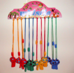 Riesgo de provocar asfixia. Resistencia escasa: Los silbatos pueden romperse en pedazos pequeños y afilados, que los niños podrían tragar. No cumple la Directiva de Juguetes y las normas comunitarias.